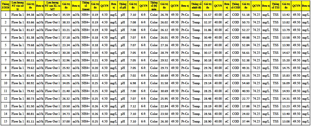 Giá trị quan trắc tự động Lần 1 – T3- 2026