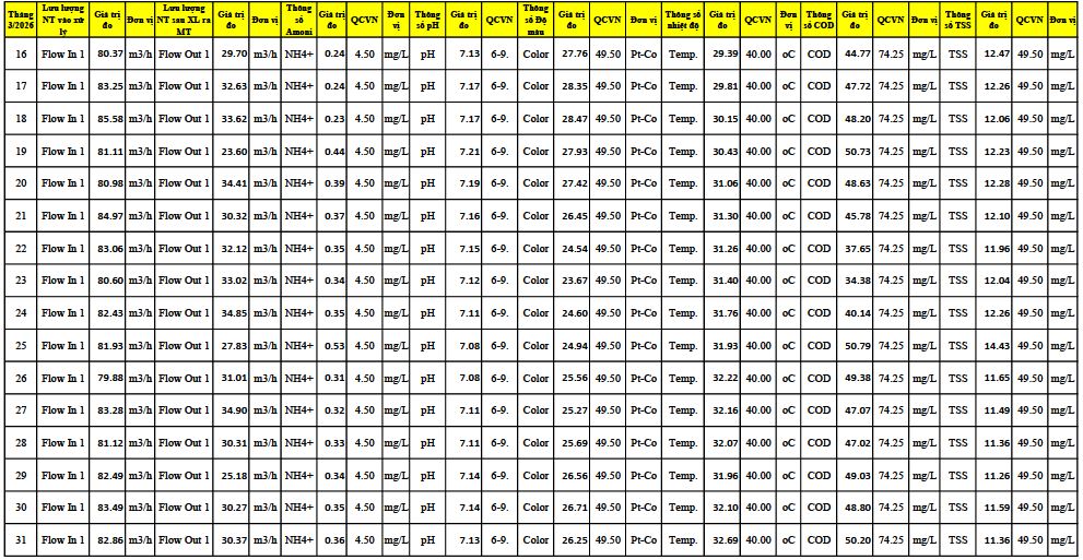Giá trị quan trắc tự động Lần 2 – T3- 2026